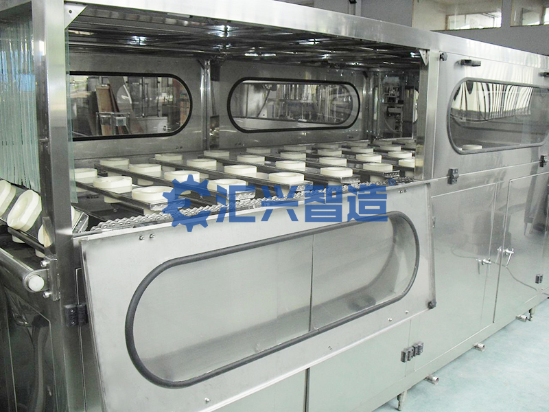 設(shè)備集沖洗、灌裝、封蓋于一體,適用于各種純凈水、礦泉水、果汁飲料、茶飲料的灌裝生產(chǎn)。經(jīng)過簡單調(diào)整部分零部件,本機同時也可用于純水,礦泉水的灌裝生產(chǎn)。采用微重力負(fù)壓灌裝技術(shù),灌裝更迅速、穩(wěn)定、準(zhǔn)確,設(shè)備配有完善的回流系統(tǒng),避免飲料的二次污染及氧化;能滿足95℃以下的熱灌裝技術(shù)要求,并配備了CIP清洗系統(tǒng),能對液缸,管道等液體接觸的地方進(jìn)行清洗;采用人機界面觸摸屏控制,PLC電腦控制,變頻器控制等先進(jìn)技術(shù)。