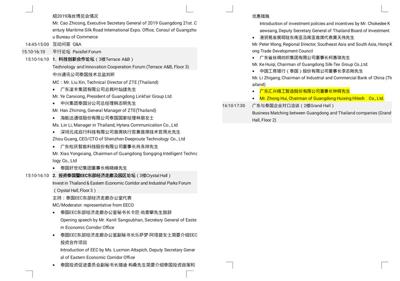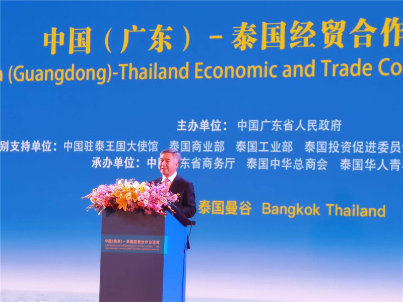 交流會上進(jìn)行粵港澳大灣區(qū)與泰國合作發(fā)展研討暨廣東省企業(yè)未來發(fā)展計劃介紹,廣東省商務(wù)廳副廳長陳越華先生作主持。廣東省發(fā)展與改革委員會主任、推進(jìn)粵港澳大灣區(qū)建設(shè)領(lǐng)導(dǎo)小組辦公室主任葛長偉先生帶來《共享粵港澳大灣區(qū)發(fā)展新機(jī)遇、推動廣東與泰國合作發(fā)展》的主題分享,珠海格力電器股份有限公司董事長董明珠女士、科大訊飛科大訊飛股份有限公司高級副總裁杜蘭女士介紹企業(yè)未來在泰國合作發(fā)展及投資計劃。交流會還進(jìn)行《粵港澳大灣區(qū)建設(shè)背景下粵港與泰國合作發(fā)展機(jī)遇》研討沙龍環(huán)節(jié),與泰國政商界代表共同探討促進(jìn)廣東和泰國雙方的交流與合作。