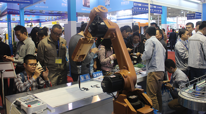 匯興智造推崇中國傳統文化,一直以傳承弘揚中國文化為己任,把中國傳統文化揉入工廠運營、產品設備已是一派自然而然。由匯興智造自主研發(fā)的書法機器人在本次博覽會上大展拳腳,深情演繹中國書法。
