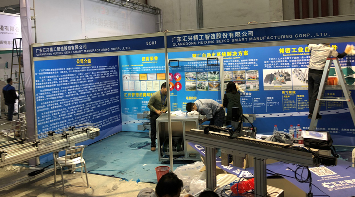 匯興智造無論是對客戶需求、產品,還是做人做事,都奉行隨“機”應變,有“配”而來。展會開始前,匯興人就緊鑼密鼓地進行展位布置和設備調試,積極備展,“不打無準備之仗”,期望把最好的匯興智造展現出來。
