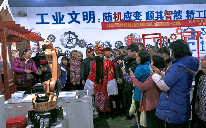 活動(dòng)現(xiàn)場(chǎng),匯興智造黨支部、工會(huì)委員會(huì)、團(tuán)工委等工作人員裝扮成財(cái)神為老人送上新年利是,陪伴老人一同參觀(guān)匯興智造工業(yè)4.0智能裝備體驗(yàn)館,體驗(yàn)智能制造“隨機(jī)應(yīng)變”“順其智然”改變傳統(tǒng)生產(chǎn)的魅力;觀(guān)看由匯興智造員工自編自演的京劇舞蹈廠(chǎng)歌等文藝節(jié)目,感受匯興智造“用情做人、用心做事”,“敬天愛(ài)人,孝道為先”的文化力量。