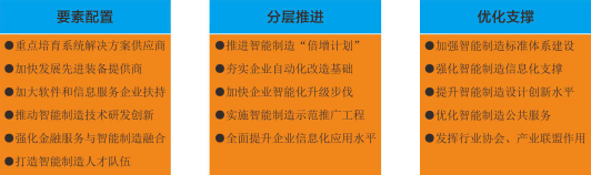 到2021年,初步構(gòu)建起示范特色鮮明、工素供給體系完備、配套鏈條完善、公共服務(wù)齊全的智能制造產(chǎn)業(yè)鏈。