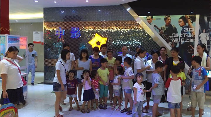 快樂的時(shí)間還在繼續(xù),午后孩子們職員的帶領(lǐng)下來到了中影星河電影城(大嶺山店)進(jìn)行觀影,選擇了“票房萌神”胡巴主演《抓妖記》進(jìn)行觀看,“調(diào)皮搗蛋的小胡巴,分分鐘把人萌化”全場小朋友被它的一舉一動(dòng)、一顰一笑逗得哈哈大笑,愛意滿滿。同時(shí),讓孩子們明白了親情、感情的重要性,相對生活,我們更多的需要學(xué)會(huì)珍惜,學(xué)會(huì)感恩。