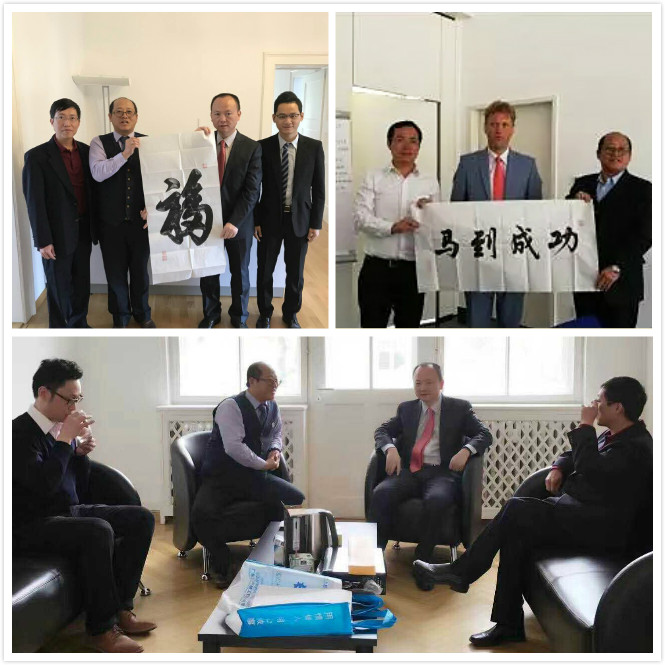 匯興智造鐘董將中國的文化傳到歐洲,將匠心的祝福送到德國,匯興智造機器人事業(yè)部工程師們專門編程的機器人書法作品:「?!埂格R到成功」送給廣東省商務(wù)廳歐洲辦、博世集團。