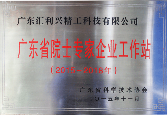 匯興智造廣東省示范院士專家企業(yè)工作站榮譽證書