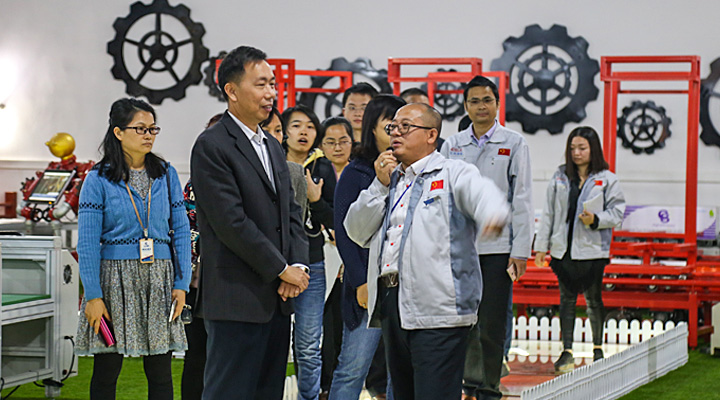 在廣東省科技工作者服務(wù)中心主任廖仕明的帶隊下,13名科技工作者迎著早春的暖陽來到匯興智造。在感受匯興智造企業(yè)文化的過程中,廖主任一行對匯興智造多年來積極倡導(dǎo)的“用情做人、用心做事”的企業(yè)精神,身體力行的“孝道(孝敬父母)、商道(感恩客戶)、人道(提升自我)”的行為準(zhǔn)則,無處不在的精益求精的做事細(xì)節(jié),以及“隨機(jī)應(yīng)變、順其智然、精工匠心、機(jī)智未來”的工業(yè)文明理念表示深深的震撼。廖主任表示,本次到訪匯興智造學(xué)習(xí)交流,對于匯興智造企業(yè)文化深有感觸,匯興智造除了是一個發(fā)展穩(wěn)健的企業(yè)外,更是一個受人尊敬的企業(yè)。