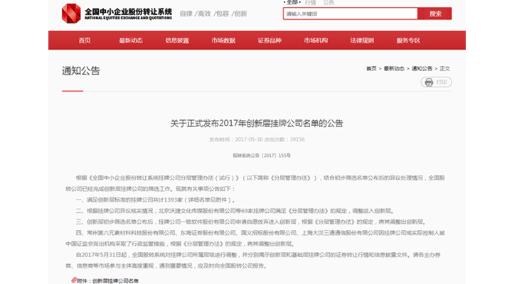 廣東匯興精工智造股份有限公司自2016年12月30日成功掛牌新三板后又傳來一大喜訊,5月30日,全國中小企業(yè)股份轉(zhuǎn)讓系統(tǒng)(以下簡稱“全國股轉(zhuǎn)系統(tǒng)”)公布了2017年創(chuàng)新層掛牌公司名單,廣東匯興精工智造股份有限公司(股票代碼:839258)成功從全國一萬余家新三板掛牌企業(yè)中脫穎而出,躋入新三板“優(yōu)等生”行列。