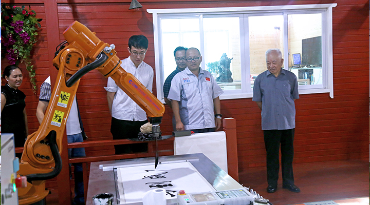 中國(guó)工程院孫玉院士一行參觀機(jī)器人寫書法