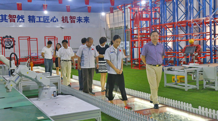 楊副院長一行在董事長鐘輝的陪同下參觀了企業(yè)的智能生產(chǎn)線演示、匯興精工智造工業(yè)4.0體驗館、工程研發(fā)部信息化組等部門,雙方表示今后要加強對接,細化合作內容,創(chuàng)造更多的社會價值。在參觀過程中,董事長鐘輝向一行成員介紹了公司的發(fā)展歷程、經(jīng)營業(yè)務及取得成就,他表示作為掛牌上市公司,始終重視企業(yè)內部的人才培養(yǎng)和技術革新,需要校企之間密切合作,并在不同的專業(yè)和領域搭建多種平臺,促進校企間的優(yōu)勢互補和良性互動。