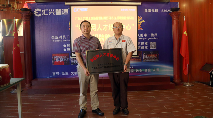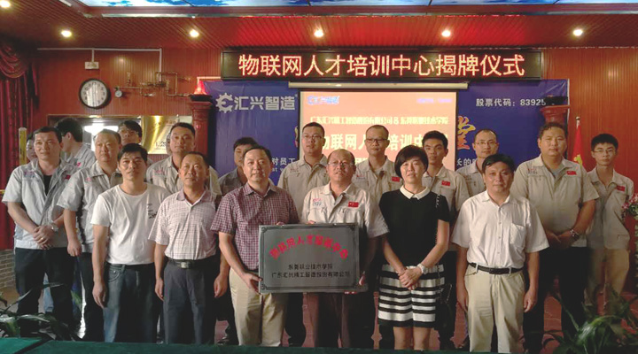 2017年9月27日下午, 東莞職業(yè)技術學院副院長楊云奇,計算機工程系主任胡選子博士,藝術設計系主任何鳳梅博士,計算機系曹文梁教授等專家人員一行蒞臨廣東匯興精工智造股份有限公司(股票代碼:839258)考察調研并舉行“物聯(lián)網(wǎng)人才培訓中心“基地揭牌儀式。匯興智造董事長鐘輝,匯興中德智能制造研究院院長李康順教授熱情接待了調研組一行。