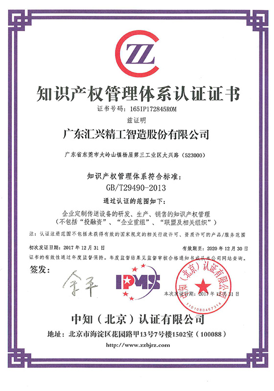 知識產(chǎn)權管理體系認證證書