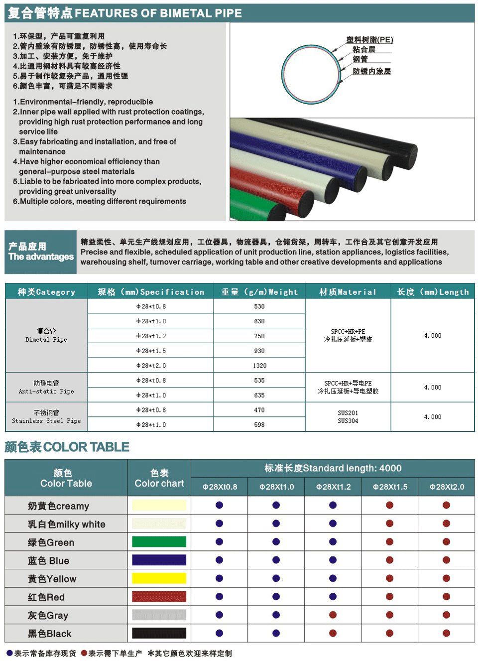 精益管,我們也經(jīng)常稱之為線棒、物流管、復(fù)合管等。是一種鍍鋅的鋼管并帶有塑料樹脂涂層。標(biāo)準(zhǔn)的精益管直徑一般是28mm,鋼管的壁厚一般在0.8mm-1.5mm之間,顏色主要為米黃色,白色,黑色,綠色等。塑膠的材質(zhì)主要以PE為主。