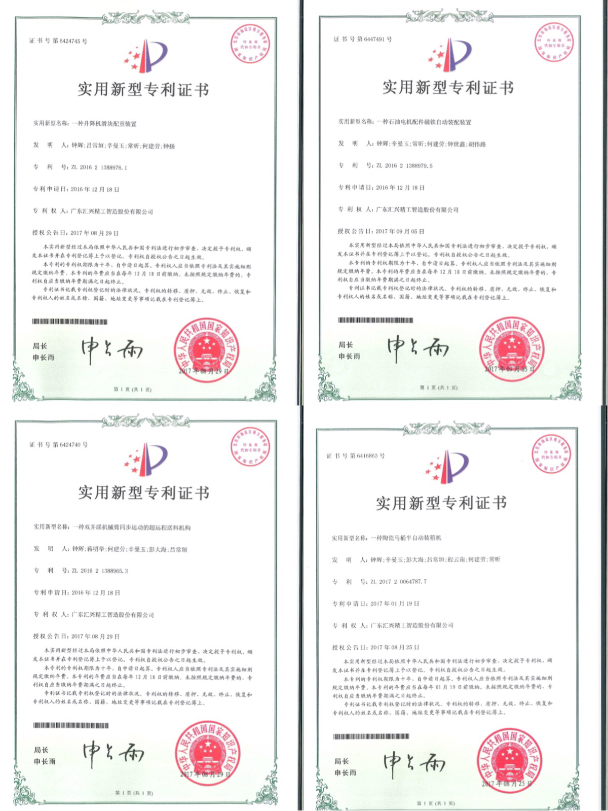 2017年9月25日,廣東匯興精工智造股份有限公司(股票代碼:839258)又獲得四項(xiàng)實(shí)用新型專利授權(quán)。關(guān)于一種升降滑......